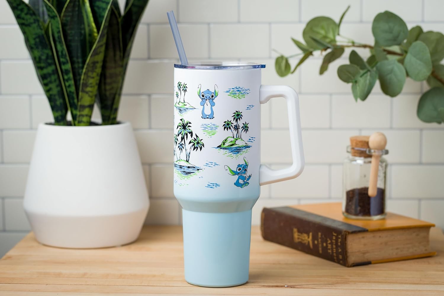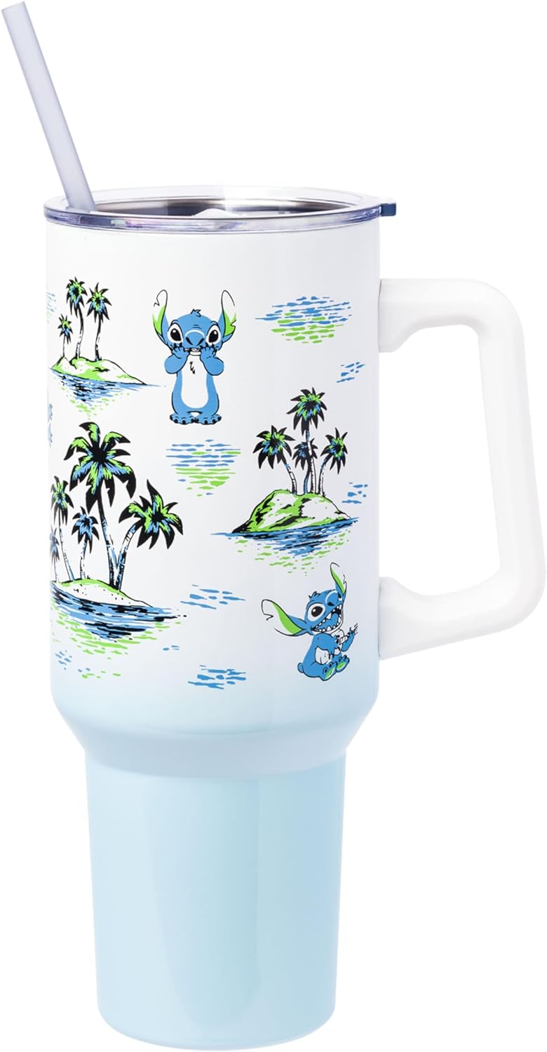 - LILO Y STITCH DE DISNEY: Disfruta de la vida isleña con este divertido vaso de viaje de acero inoxidable de doble pared de Lilo y Stitch con capacidad para 40 onzas. Presenta un fondo blanco con bocetos retro y caprichosos de palmeras, el océano y el experimento de Disney 626 Stitch. Incluye una tapa deslizante segura y una pajita para mantenerse hidratado mientras viaja. ¡Incluso puede caber en su portavasos de tamaño estándar!